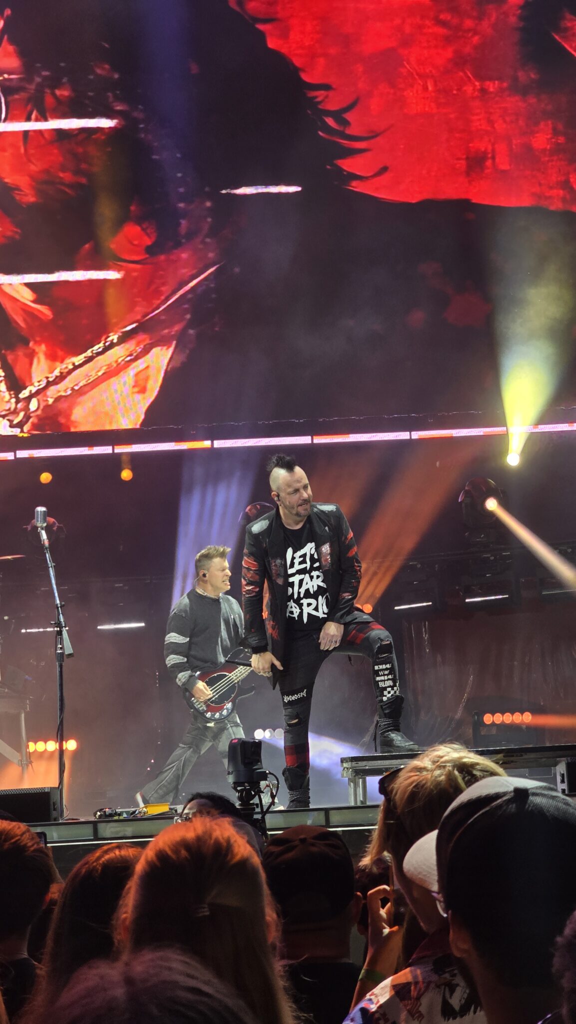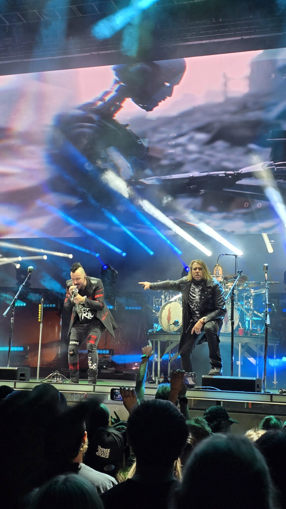 Frontmen Adam Gontier and Matt Walst stalked the stage with raw energy, every lyric spit with conviction. Guitarist Barry Stock’s riffs hit like lightning bolts, while Neil Sanderson’s drumming rattled the chest of anyone standing too close to the barricade. The sound mix was crisp — loud enough to shake the ground, but clean enough to catch every jagged edge of the band’s emotion.