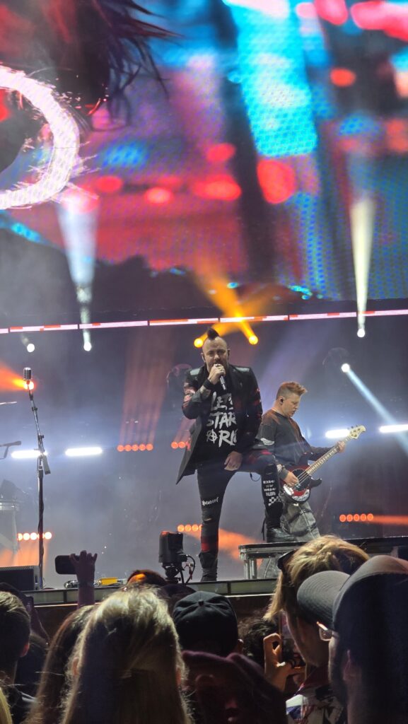 The band balanced fan-favorite classics with new material from Explosions and Alienation. Tracks like “So-Called Life” and “Mayday” showed just how heavy their newer sound feels, while staples like “I Hate Everything About You” and “Pain” turned the venue into one massive choir. The crowd’s voices swelled, carrying the chorus with such intensity that for a brief moment, Adam stepped back from the mic, smiling as thousands of fans sang the words for him. It was goosebump-inducing — a reminder that these songs aren’t just anthems, but lifelines for so many.